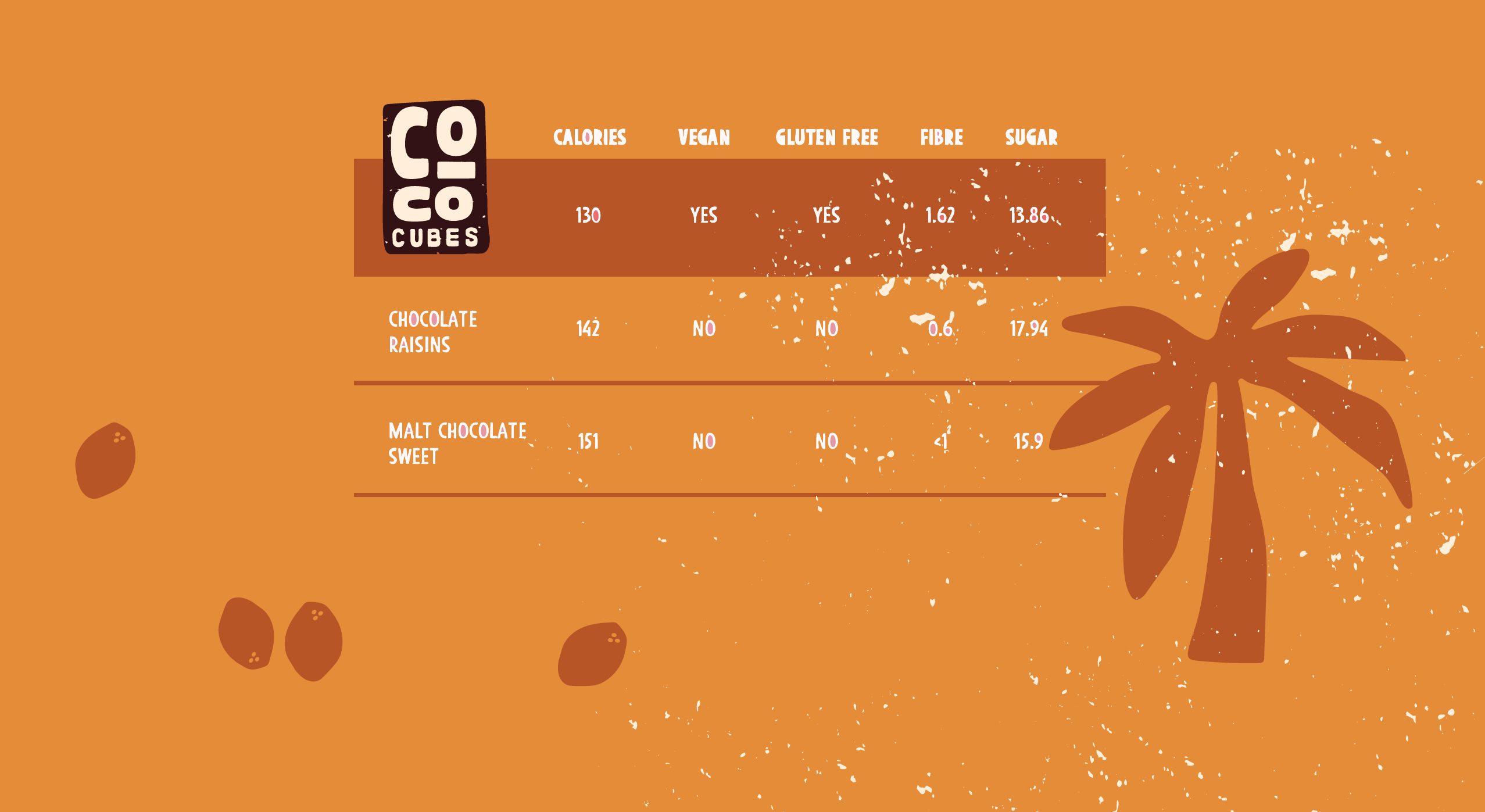 All values are per 30g serving size and compare COCO CUBES to leading UK competitor brands.